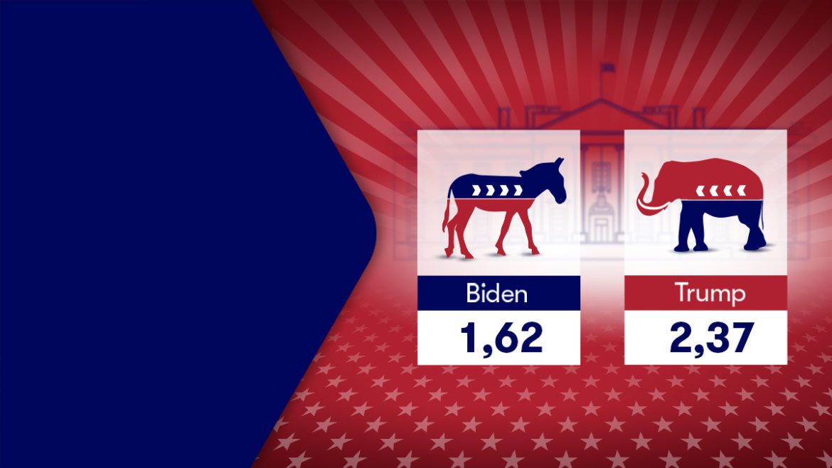 - Pennsylvania (20): Demokraatit 1,55 – Republikaanit 2,37